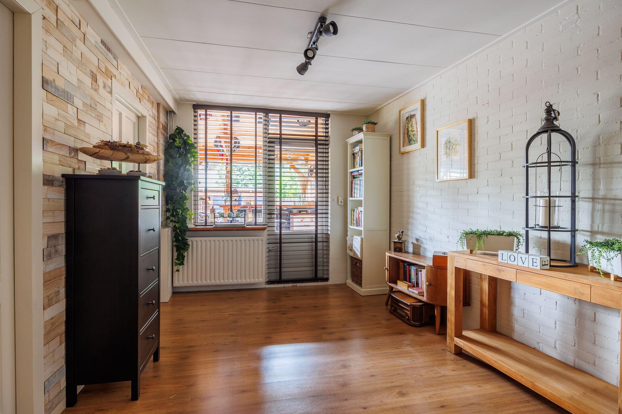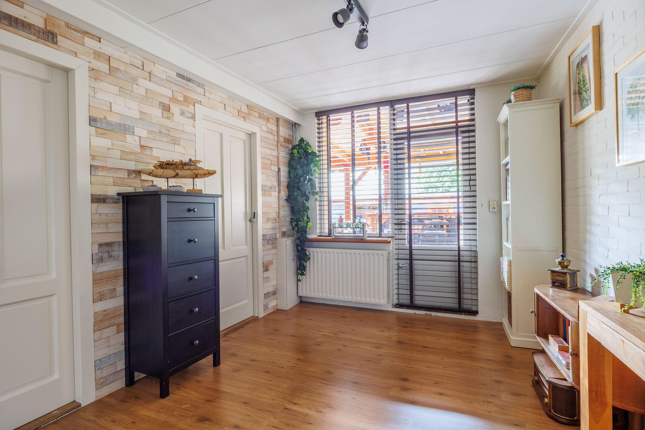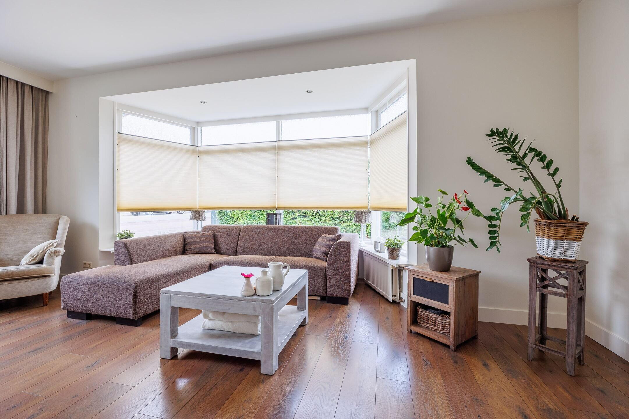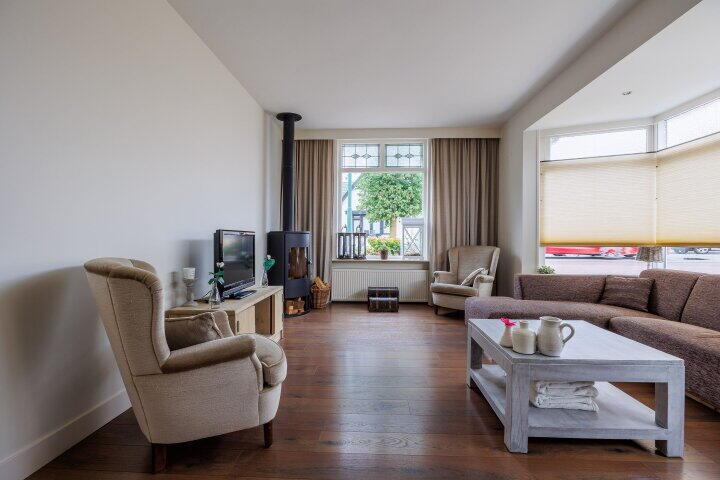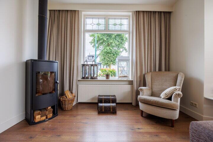 Stap binnen in een verrassend ruime en lichte woning waar sfeer en karakter moeiteloos samenkomt. De royale living is afgewerkt met een warme laminaatvloer en een sfeervolle houtkachel. De vele raampartijen en de grote erker zorgen voor veel lichtinval in deze ruimte. Het kozijn is in 2024 vernieuwd en ook zijn er glas-in-lood ramen ingezet, wat zorgt voor een karaktervolle uitstraling.