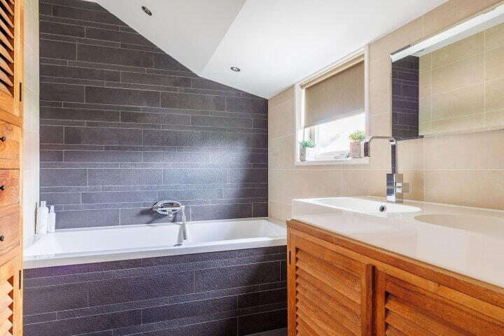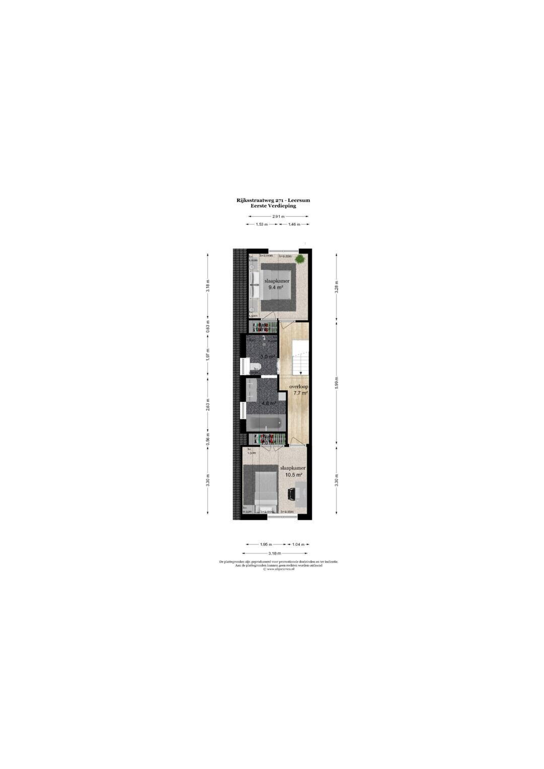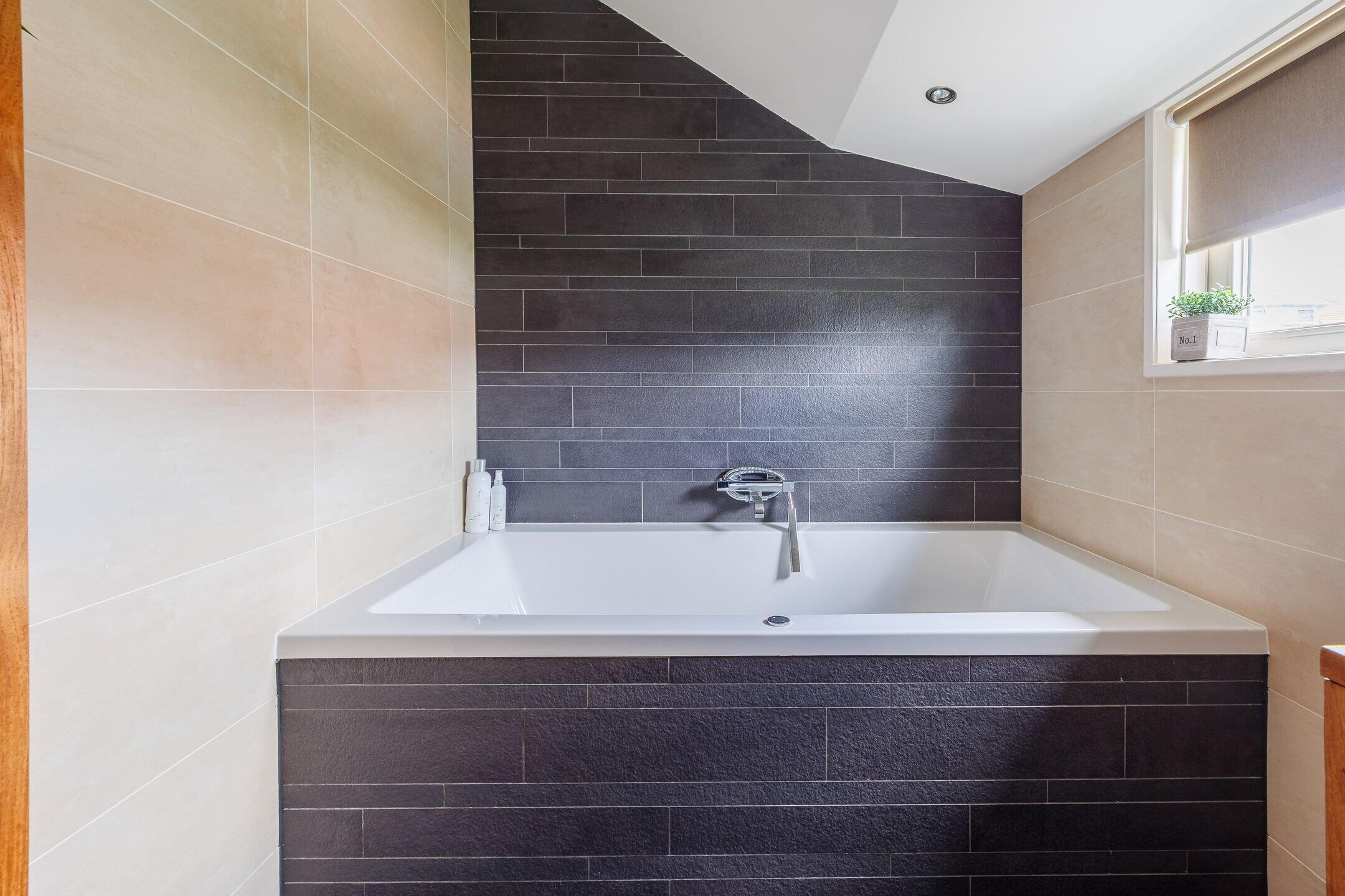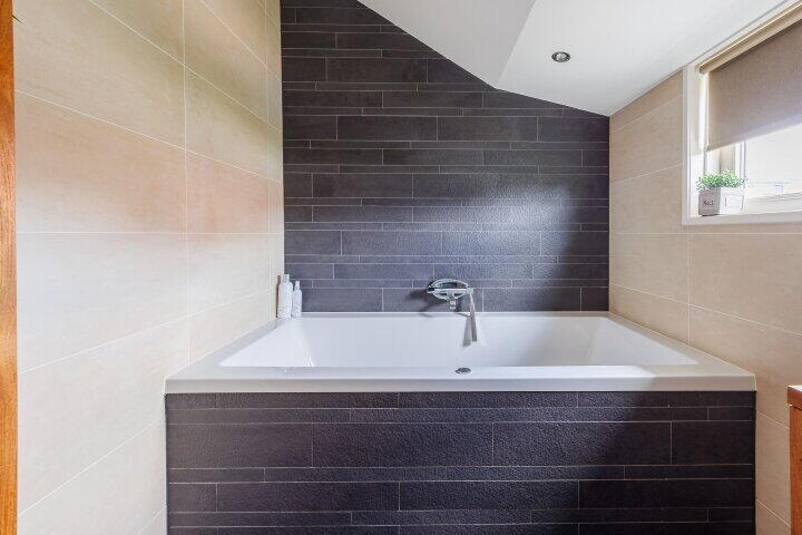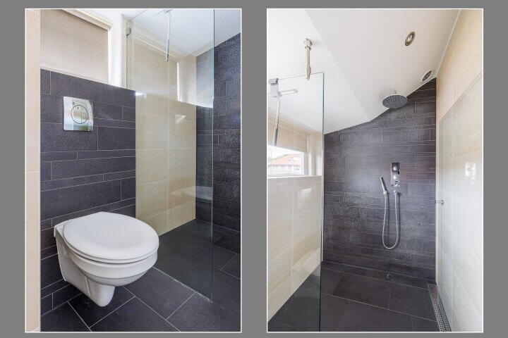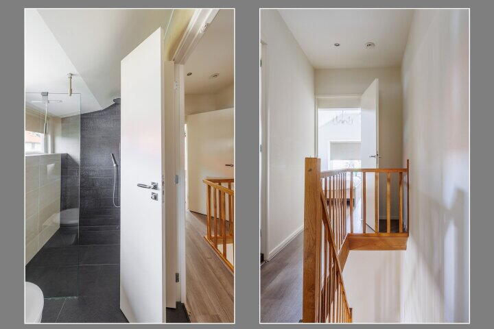 Op de eerste verdieping bevinden zich twee ruime slaapkamers, elk met inbouwkasten en tv-aansluiting. De badkamer is een oase van rust: licht, modern en compleet met vloerverwarming, whirlpool, dubbele wastafel, toilet en een luxe regendouche. De badkamer beschikt over een breed dakkapel.