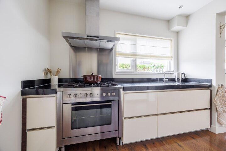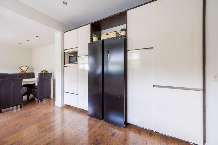 De keuken is het hart van het huis en uitgerust met moderne voorzieningen zoals een vaatwasser, 5-pits gasfornuis, koelkast, een magnetron, veel opbergruimte en een luxe stenen aanrechtblad. Het aansluitende eetgedeelte is ideaal voor lange avonden tafelen met vrienden of familie.