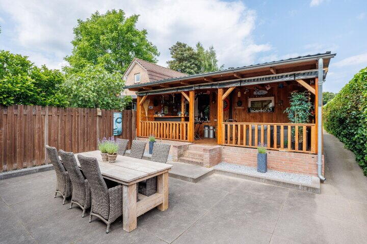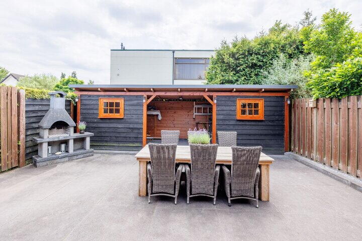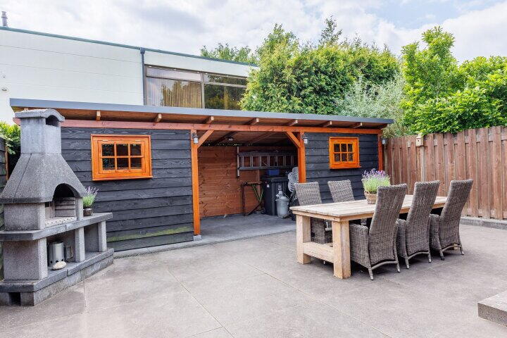 Achterin de tuin is ook nog een brede overkapping te vinden.